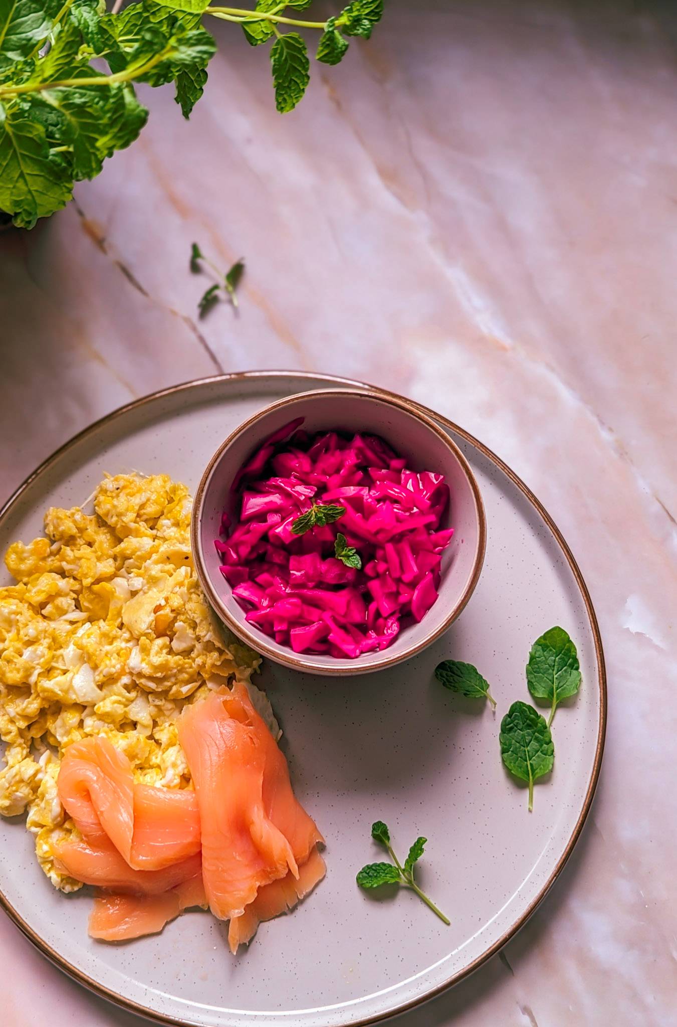In the Garden: Cabbage & Sauerkraut 🥬 Walking through my parents’ veg patch, the cabbages look like they could win awards. Firm, glossy, and standing tall. It reminded me just how versatile this humble veg is - perfect in soups, stir-fries, or, my favorite, fermented. If you’ve never tried making sauerkraut, it’s such an easy way to get live cultures into your diet. My pink version (with red cabbage) is a simple place to start, I even add it next to an egg scramble for breakfast.
