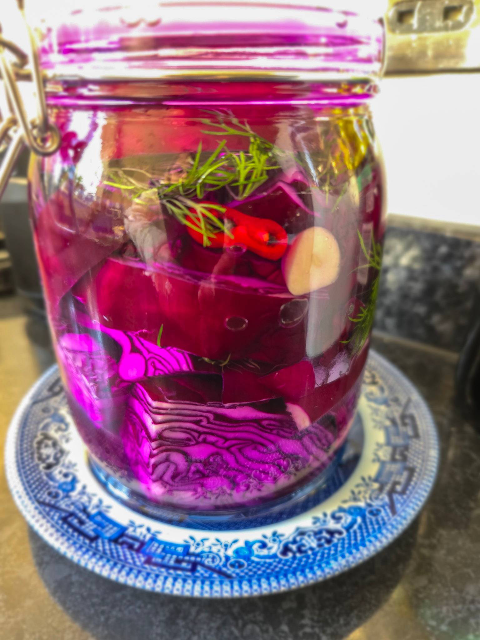 In the same colorful spirit (you know how your good gut bugs love all colorful fruit and veg), I’m putting down another batch of pink sauerkraut. I don’t slice mine thinly (life is too short), I chop it into chunks and it still ferments beautifully. Low effort, but big payoff. A tablespoon or two of fermented veg daily is one of the easiest ways to help both gut comfort and immunity at this time of year.